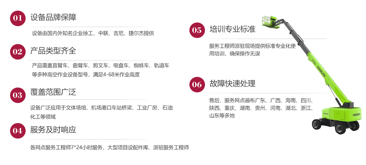 公司在發(fā)展歷程中堅定實行大客戶戰(zhàn)略,致力于以優(yōu)質(zhì)的服務(wù)打造公司的品牌和核心競爭力,現(xiàn)已在廣東、廣西、海南、四川、陜西、湖南、重慶、河南、湖北、貴州等多地建立了完善的售后服務(wù)網(wǎng)點,24小時為客戶排憂解難。今后我們將結(jié)合市場需求,不斷創(chuàng)新業(yè)務(wù)模式、優(yōu)化設(shè)備結(jié)構(gòu)、加強運營管理、擴大服務(wù)網(wǎng)點、提升服務(wù)水平,形成以設(shè)備租賃、銷售、二手設(shè)備交易等全方位一站式的全面服務(wù)體系,用高標準高質(zhì)量的服務(wù)讓客戶在和公司合作的過程中實實在在感受到省心、省力、省錢的體驗,在客戶心目中樹立“家鋒”的品牌形象。